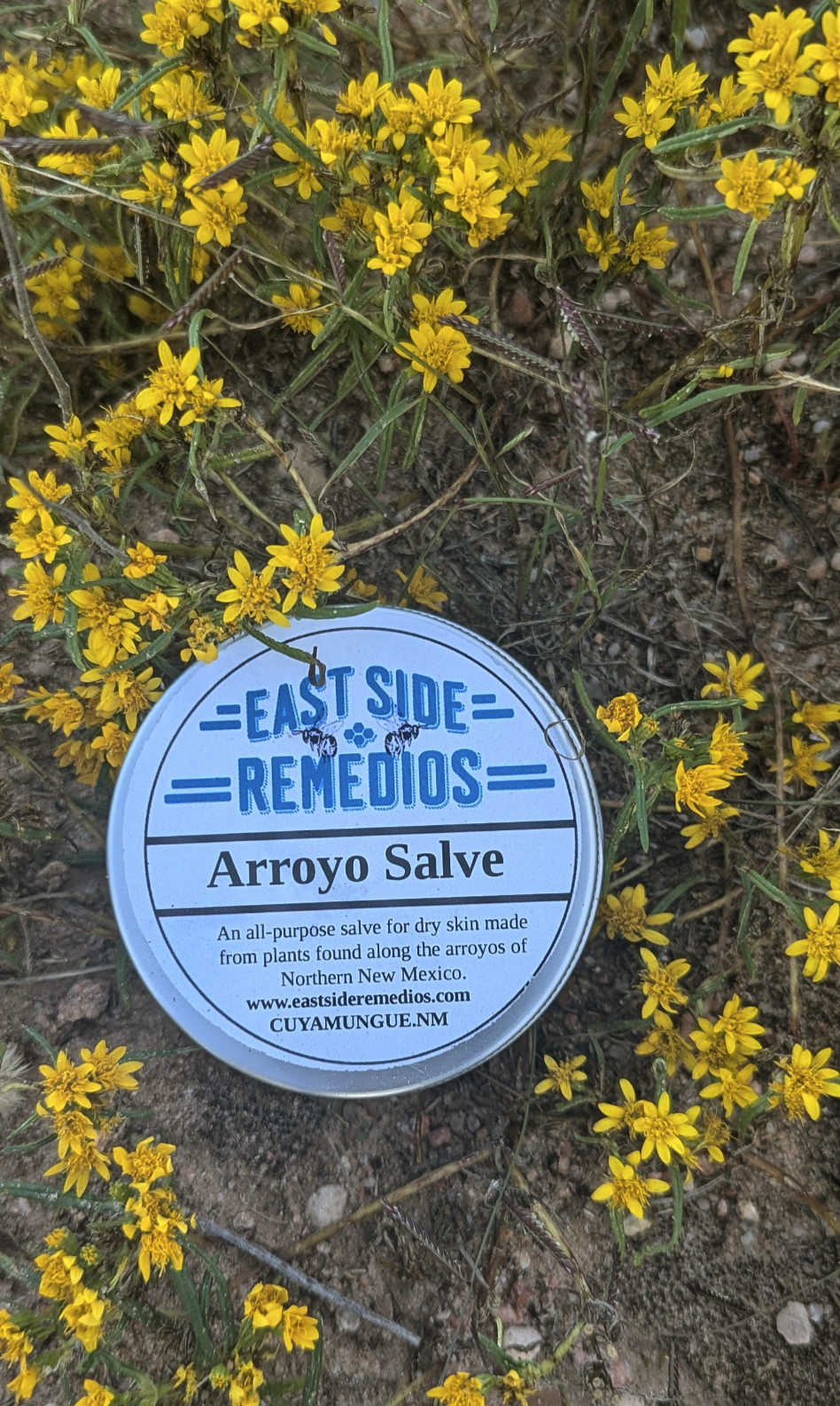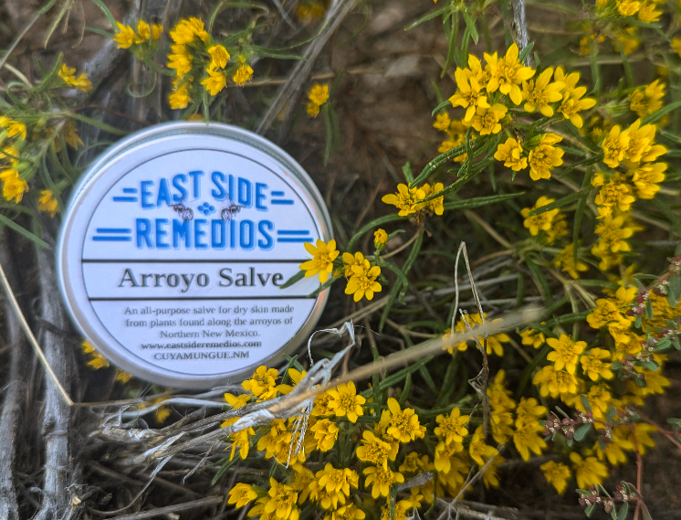 This super nourishing salve is made from plants found growing along Northern New Mexico arroyos. Saltbush, wild limoncillo, & evening primrose are infused in carrier oils. Local beeswax from our apiary rounds is then added.