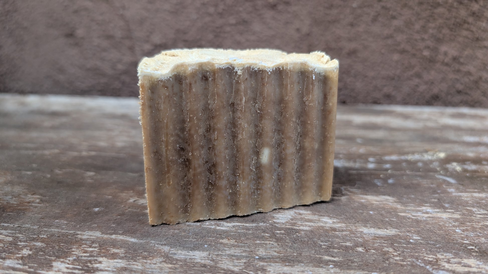 Malpais Stout Beer from NM 's La Cumbre Brewery combines with orange peel infused Polk's Folly lard and coconut oil to give you a big suds and big moisturizing soap.